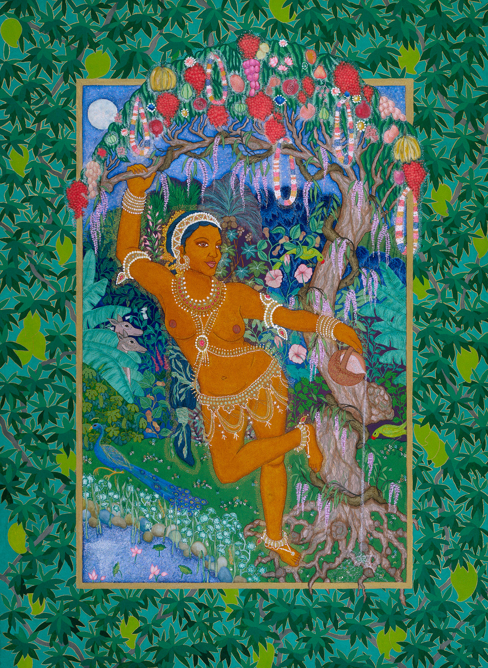 Original Painting: 17” x 24” Watercolor, gouache, iridescent watercolor and 23K gold leaf on paper.